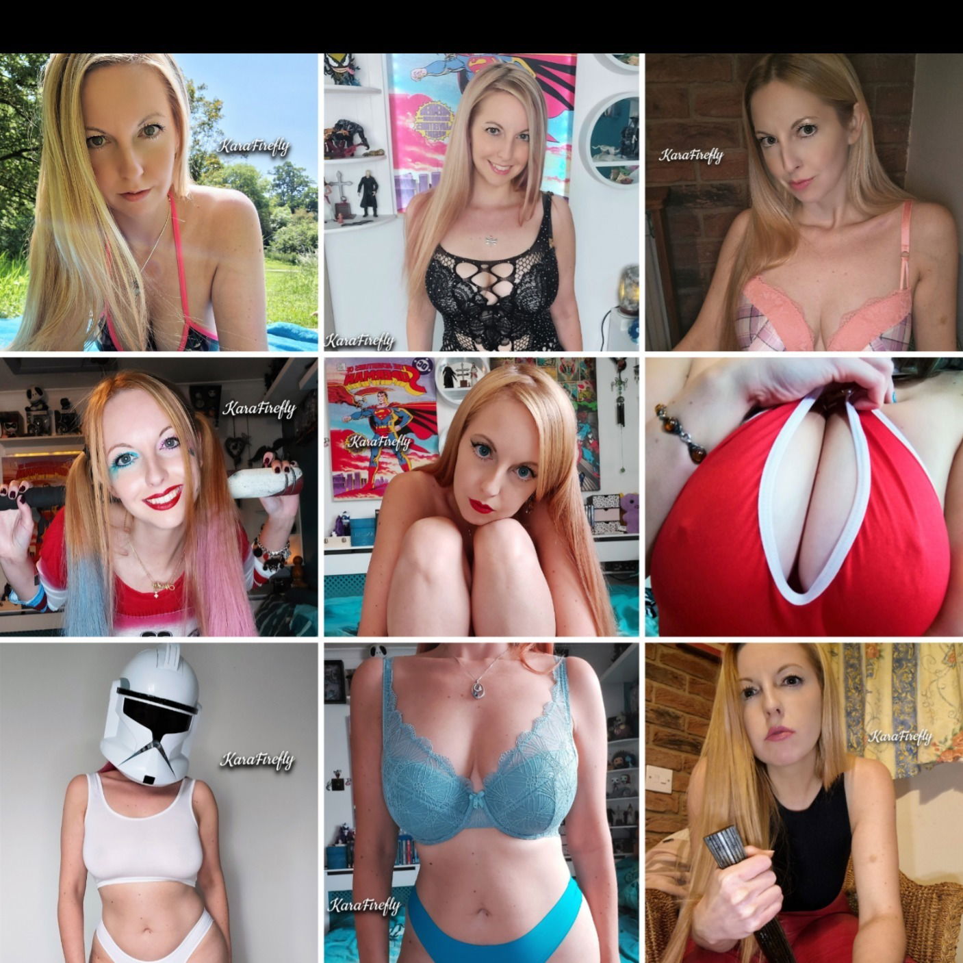 Kara's content showcases a versatile style that ranges from elegant lingerie photography to imaginative cosplay, always infused with her signature blend of sophistication and playful energy. She approaches each project with artistic intention, whether creating intimate self-portraits or elaborate themed sets that highlight her creative vision and attention to detail.